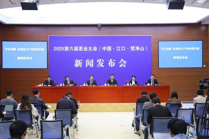 4月29日,2025第六届茶业大会(中国·江口·梵净山)新闻发布会在贵阳举行。