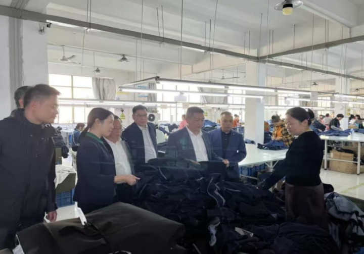 招商人员在纺织企业考察。