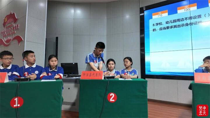 决赛现场,参赛选手围绕宪法、民法典、未成年人保护法等与青少年紧密相关的法律法规展开激烈比拼。个人必答环节,选手们沉着应对,展现出扎实的知识储备;抢答题阶段,各队反应敏捷,比分你追我赶,将现场气氛推向高潮;风险题环节,代表队或稳中求进、或放手一搏,策略与胆识并存。