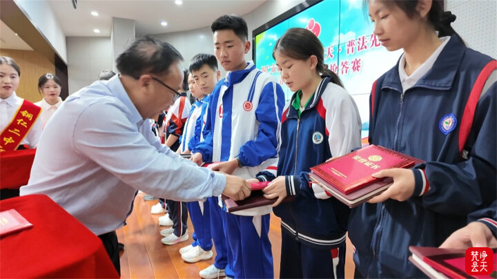 在4月15日全民国家安全教育日之际,由市关工委、市委政法委、市中级人民法院、市人民检察院、市教育局、市司法局、共青团市委、市法学会联合举办的铜仁市第五届“关爱明天、普法先行”青少年学生法律知识抢答赛在铜仁二中隆重举行,充分展现了新时代青少年的法治素养和青春风采。