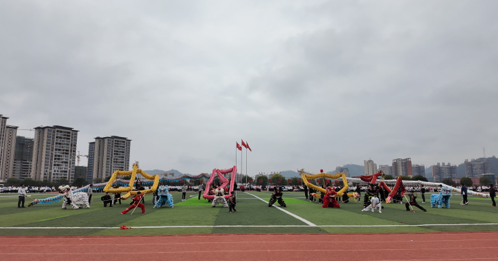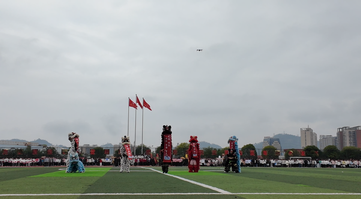 开幕式后,精彩的体育展演陆续登场。舞龙舞狮与武术表演气势恢宏,健身气功五禽戏、太极功夫扇、八段锦等传统体育项目刚柔并济,中华健身鼓节奏铿锵,幼儿广播体操活泼灵动,充分展现了学校体育文化的多元融合与青春活力。