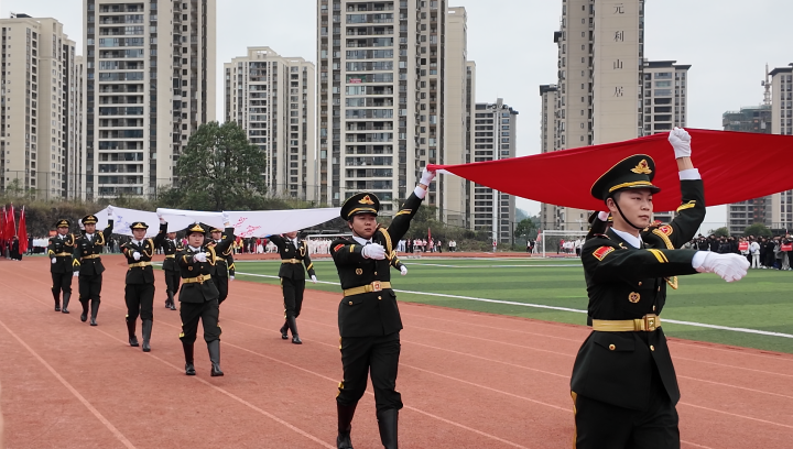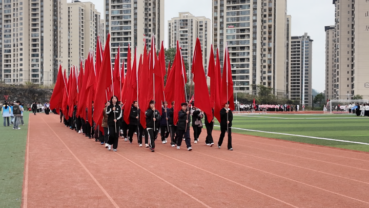 在雄壮的国歌声中,五星红旗冉冉升起,全场师生肃立,向国旗行注目礼,为这场体育节拉开了庄重而热烈的序幕。随后,运动员代表和裁判员代表分别发言并宣誓,承诺将秉持公平竞争、尊重规则的精神,全力以赴参与比赛、公正执裁。