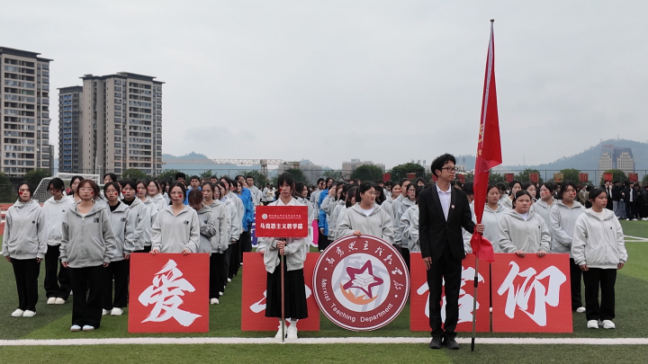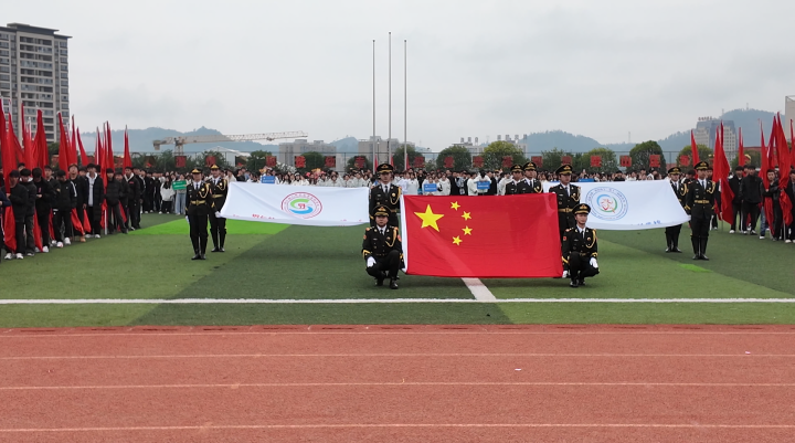 开幕式在庄严的入场式中拉开帷幕。国旗方阵、校旗方阵、会旗方阵、彩旗方阵、幼儿园方阵、各教学单位方阵及铜仁市旅游学校方阵依次入场,步伐整齐、精神抖擞,展现出幼专师生昂扬向上的精神风貌。