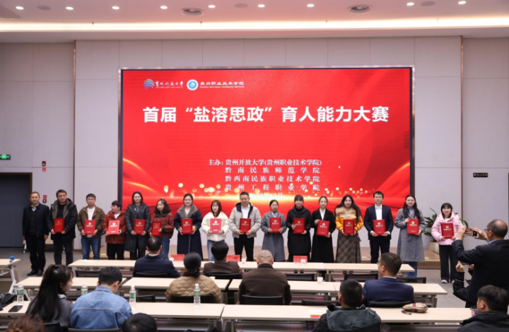 12月24日,由贵州开放大学(贵州职业技术学院)发起,联合黔南民族师范学院、黔西南民族职业技术学院、贵州工程职业学院共同主办的全省首届“盐溶思政”育人大赛圆满落幕。铜仁开放大学体系7支参赛队伍凭借扎实的教学功底、创新的育人设计和鲜明的开放教育、社区教育特色,在107支队伍中脱颖而出,喜获一等奖2项、二等奖3项、三等奖2项的优异成绩,充分展现了铜仁开放大学体系思政育人工作的深厚底蕴与创新活力。