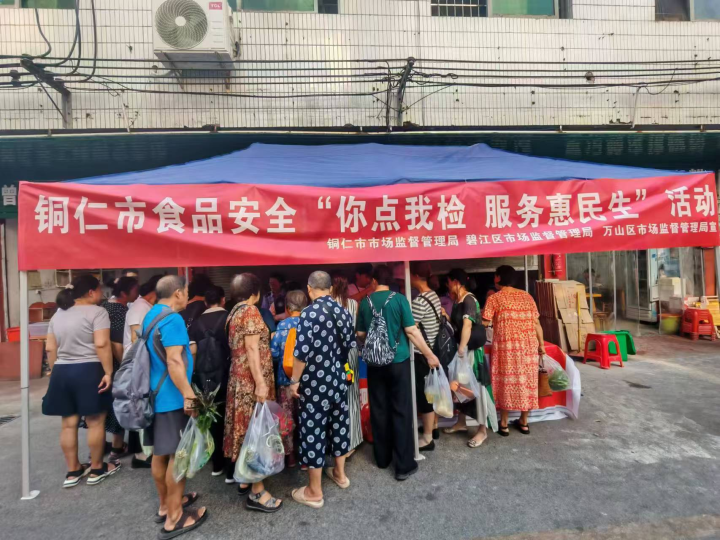 食品治理靠大家,“你点我检”“你点我查”是连接监管与民生的重要桥梁。食品安全宣传周期间,铜仁市县两级持续开展“你点我检、你点我查”活动。群众线上线下“点选”最关注的品种、主体或领域,监管部门抽样、快速检测并及时公示结果,群众真正成为食品安全“参与者”“监督者”,食品安全宣传周期间,已累计完成1017批次抽检。“以前总担心菜市场的蔬菜农残超标,现在能亲眼见证检测过程和结果,真正放心了。”参与活动的王女士的话语,道出了市民群众的共同感受。这种“互动式”监管,既提高了监管的针对性和有效性,更增强了群众的获得感与满意度,为社会共治营造了浓厚氛围。