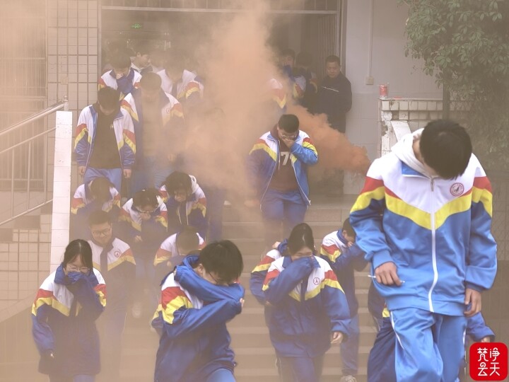随着警报响起,各班级师生迅速反应,组织学生用湿毛巾等捂住口鼻、低姿弯腰,严格按照预定路线,快速、规范撤离至操场安全区域。撤离到位后,教师及时清点人数并上报,确保全员安全。全程紧张有序、组织严密,展现了师生良好的应急素养。
