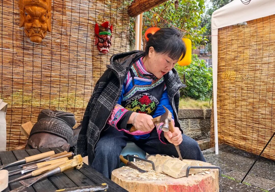 下午两点半,随着开集仪式启动,位于东山脚下的中南门历史文化旅游后街逐渐热闹起来。三三两两的市民游客漫步古街,非遗的魅力触手可及。在沿河傩面具、玉屏箫笛、万山朱砂等展台前,非遗传承人巧手翻飞,现场展示匠心绝技,分享指尖上的传承故事,让古老技艺在节日的氛围中焕发新生。乐队演唱、曲艺表演穿插其间,流动的演绎与沉浸式体验让整条古街动静相宜,处处洋溢着浓厚的文化气息。