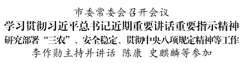 3月12日,市委常委会召开会议,学习贯彻习近平总书记近期重要讲话重要指示精神,认真落实中央和省委相关部署要求,研究部署“三农”、安全稳定、开展深入贯彻中央八项规定精神学习教育、关心下一代等工作。
