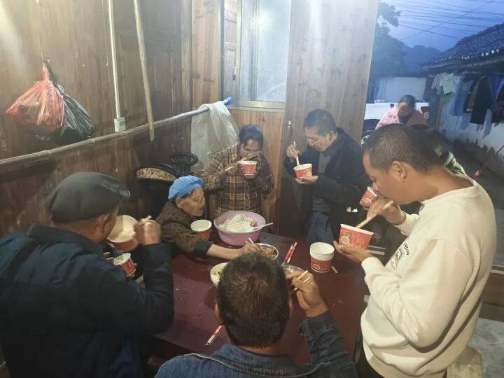 在大冲村大湾组地质灾害临时安置点,22名群众围坐在一起安心用餐,现场气氛温馨和谐。村民廖前元感激地说:“雨下大了,政府就第一时间组织我们转移到安全地段,还给我们准备了那么丰盛的饭和菜,我们很安心。”