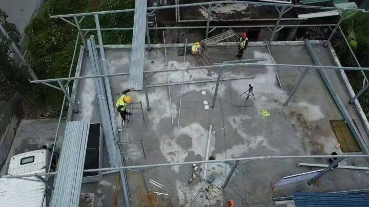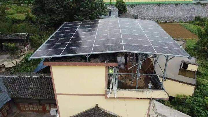 站在双塘街道桃园社区石院坝组刘权华家院坝,抬头望去,楼房屋顶的钢架正在逐步搭建完善,这可不是建新房,而是思南县屋顶分布式光伏发电项目建设的缩影。