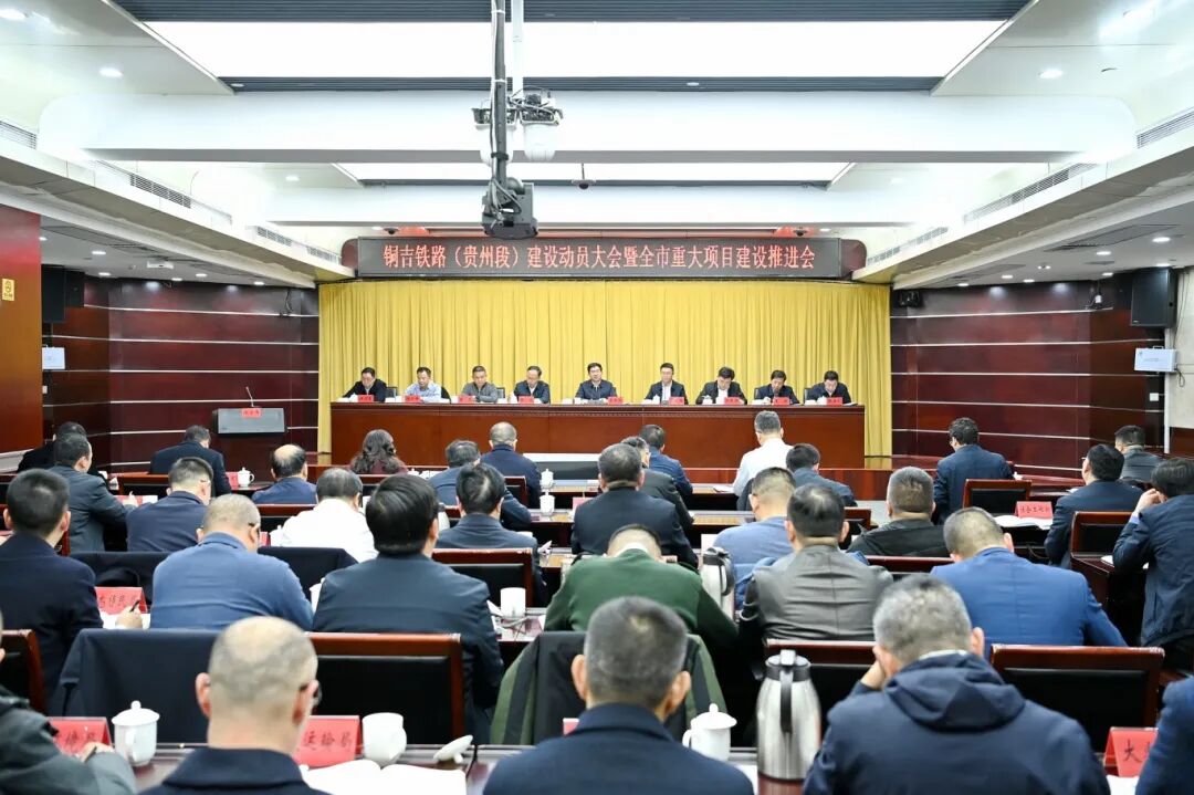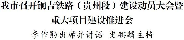 11月25日,铜吉铁路(贵州段)建设动员大会暨全市重大项目建设推进会召开。市委书记李作勋出席并讲话。他强调,要全面贯彻落实中央和省委、省政府重大决策部署,进一步营造抓项目、促发展的浓厚氛围,以狠抓项目扩大有效投资,以有效投资拉动经济增长,努力完成全年经济社会发展目标任务。市委副书记史麒麟主持会议,市领导张茂、赖振玮、黄进、王飚、杨雪峰、张吉刚、郑顺恩参加。