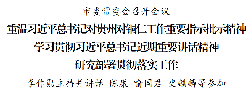 1月3日,市委常委会召开会议,重温习近平总书记对贵州对铜仁工作重要指示批示精神,学习贯彻习近平总书记近期重要讲话精神,研究部署贯彻落实工作。