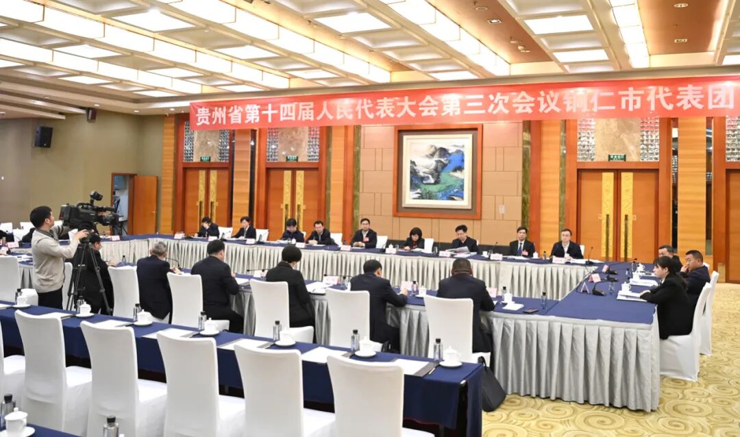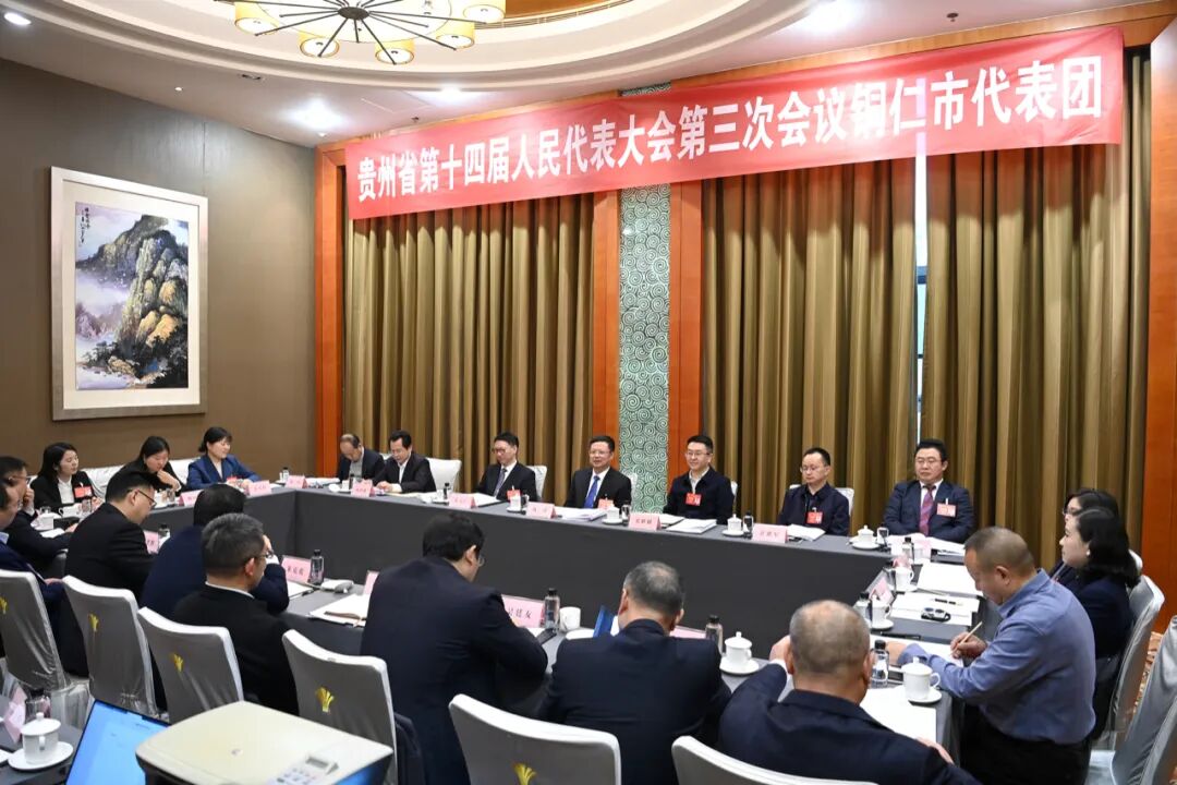 出席省十四届人大三次会议的铜仁市代表团召开分组会议,继续审议政府工作报告,审议大会选举办法草案、代表大会议事规则修正草案,审查贵州省2024年国民经济和社会发展计划执行情况与2025年国民经济和社会发展计划草案的报告、贵州省2024年预算执行情况和2025年预算草案的报告。省人大代表肖凯林、张涛、张玉广、肖向阳、石松江、夏虹、钟汰甬、陈康、陈达新、史麒麟、韩佐芝、张洁以及列席会议的胡洪成、张洪亮、蒋体佩、尹贵贤等同志发言。