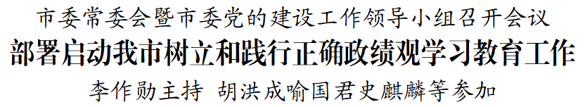 3月1日,市委常委会暨市委党的建设工作领导小组召开会议,学习贯彻习近平总书记关于树立和践行正确政绩观的重要论述,全面落实中央党的建设工作领导小组会议、省委常委会暨省委党的建设工作领导小组会议精神,部署启动我市学习教育工作。