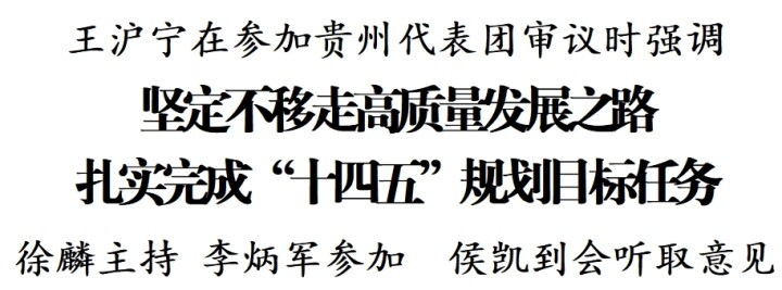 中共中央政治局常委、全国政协主席王沪宁5日下午来到他所在的贵州代表团,同代表们一起审议政府工作报告。