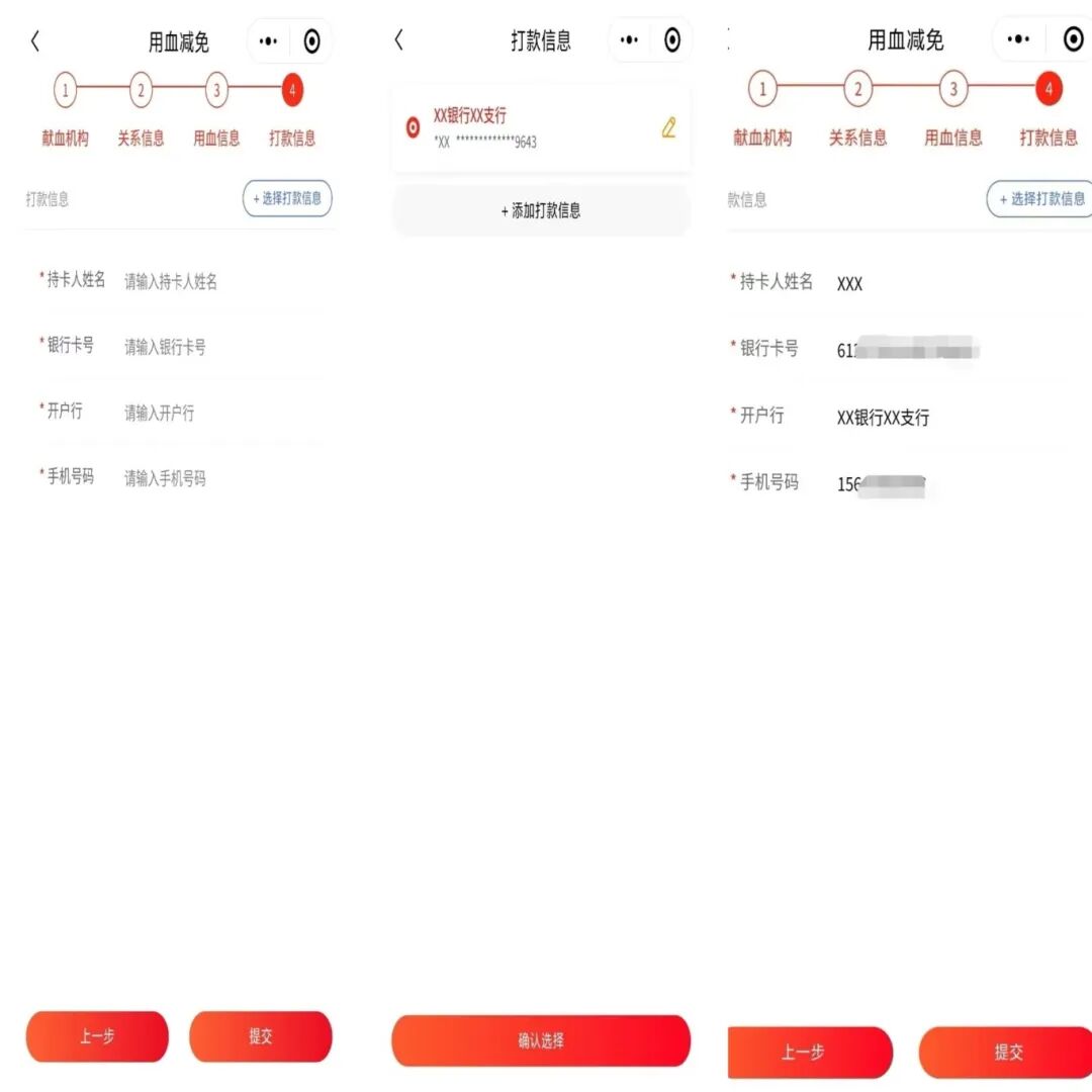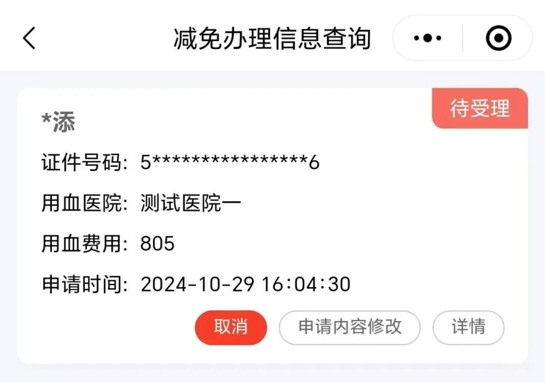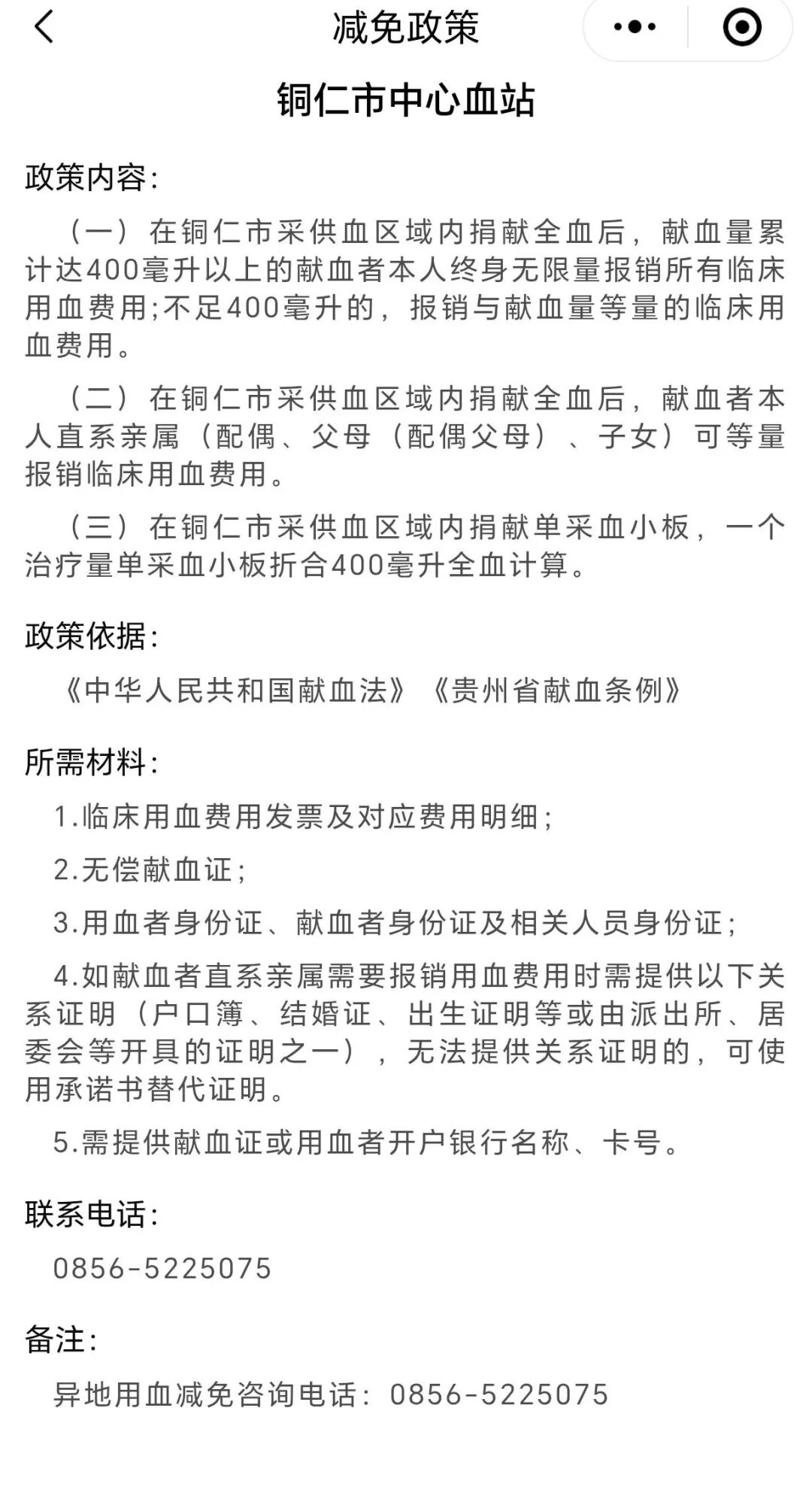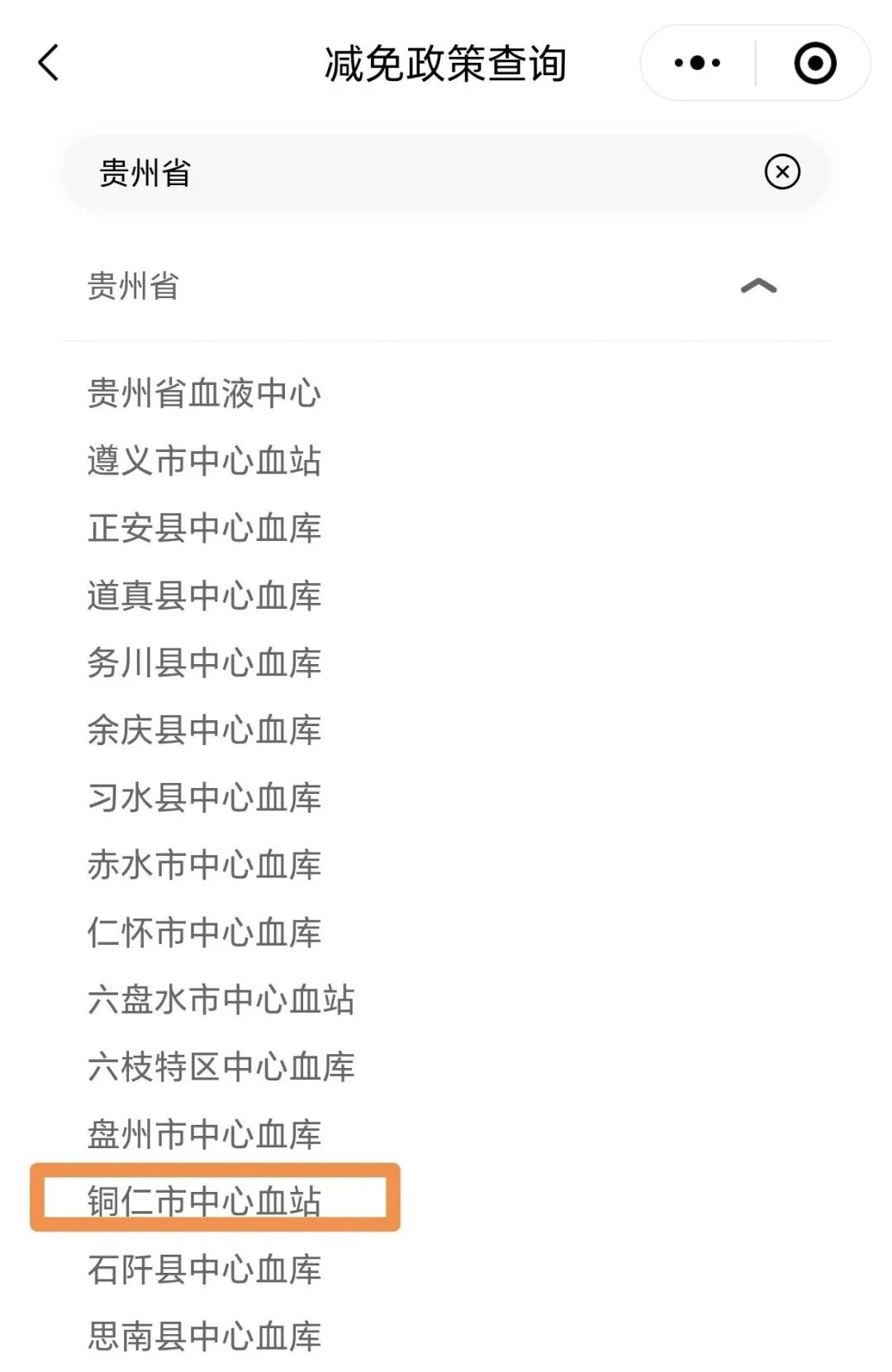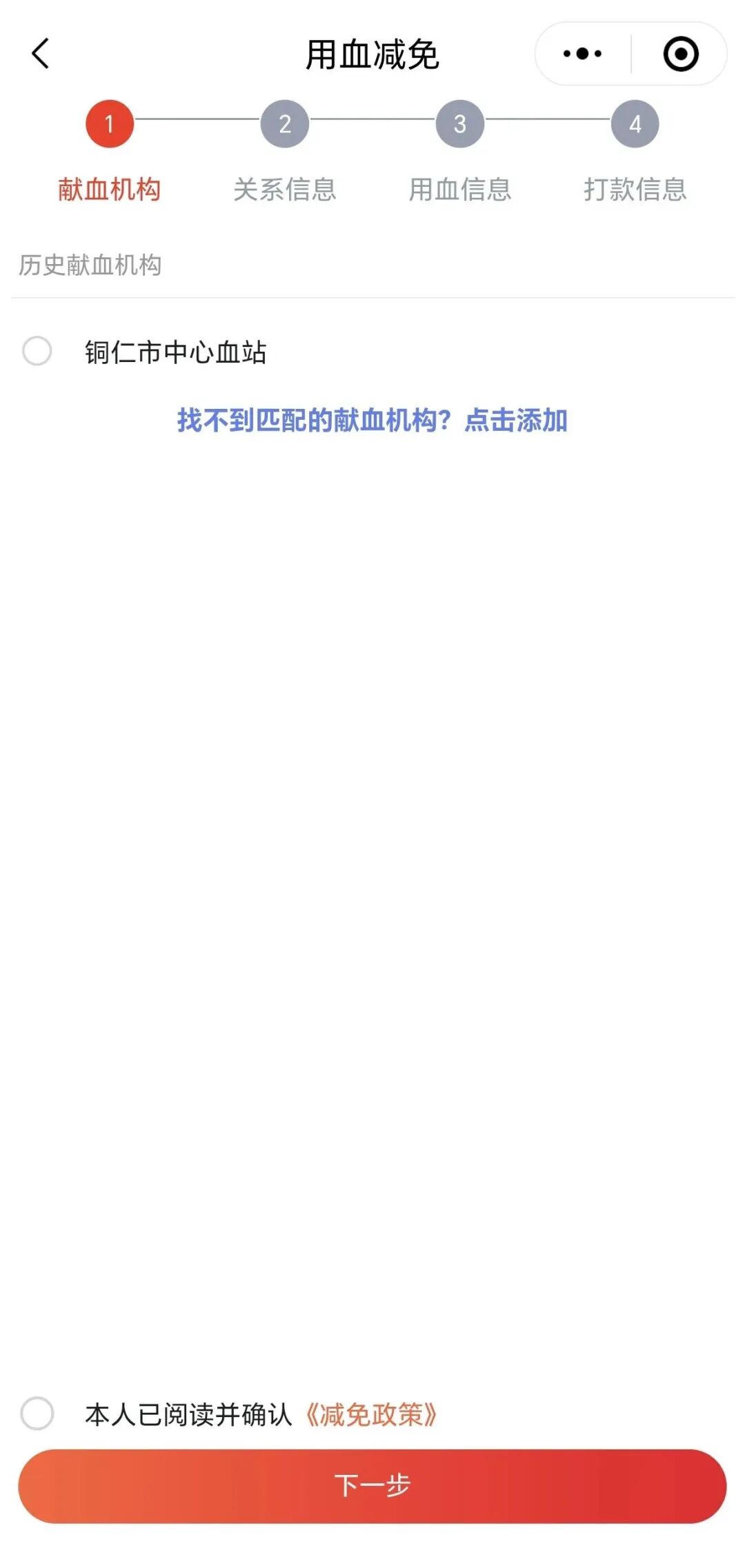 选择采供血机构后,可查看该机构的减免政策(见小程序截图4)。