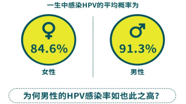 不管男性还是女性,都有可能感染HPV。女性一生中感染HPV 的平均概率为84.6%,男性为91.3%。HPV 可没有性别歧视,它是全人类共同的健康大敌。