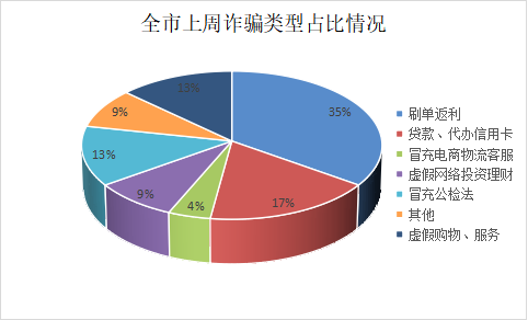 三、上周,全市电信诈骗类型占比情况