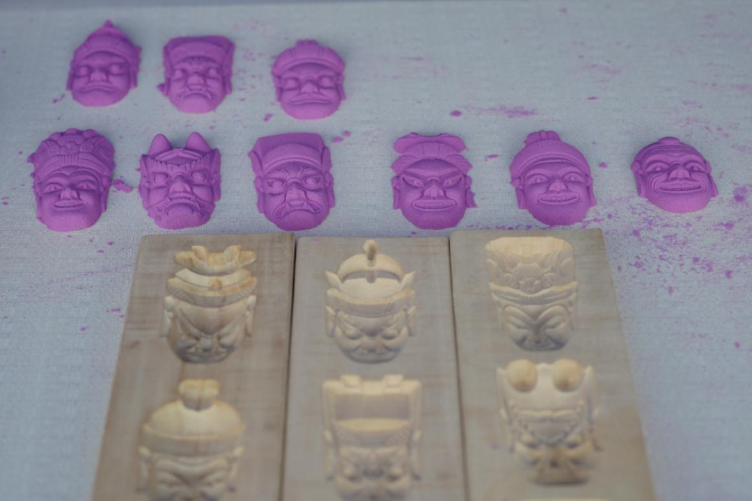 傩面具制作工艺在铜仁所辖地区广为流传,尤其是德江县、沿河县、江口县的傩面具制作工艺极具代表性。傩面具是傩堂戏表演的主要道具,其面具雕刻技法以圆雕、浮雕、镂雕为主,雕刻过程有选料、出坯、雕刻、上色等二十多道工序。原材料主要取自本地白杨木或柳木,木质细腻、易雕刻、不易开裂。面具造型凝重,有神秘的实感,使用单一色彩或多色彩表示忠诚、刚直、凶悍、英武、妍丽,使面具形象有原始古朴、富于幻想、拙朴天真等特点。